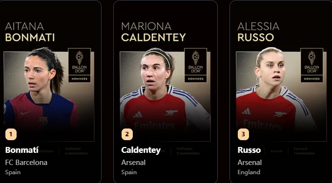 Giải thưởng Quả cầu vàng 2025 đã được công bố, Bonmati đã giành giải Quả cầu vàng cho phụ nữ, Caldentai giành vị trí thứ hai và vị trí thứ ba của Russo.